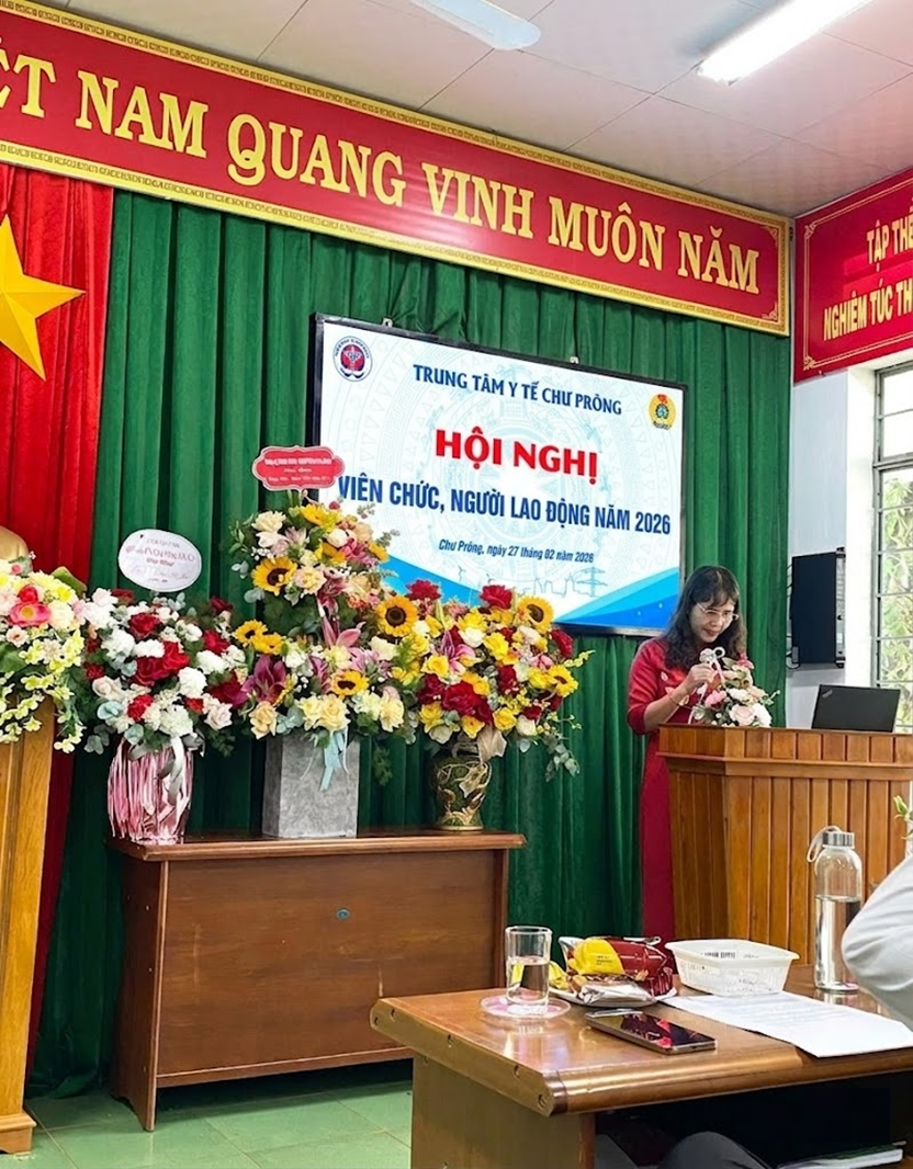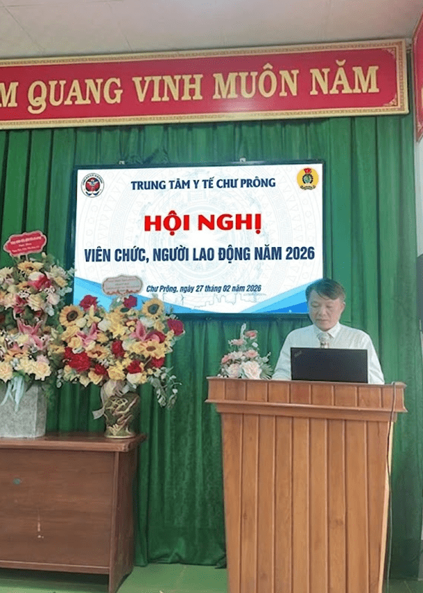 Tiếp nối Hội nghị tổng kết công tác xây dựng Đảng, thực hiện nhiệm vụ chính trị năm 2025 và phương hướng hoạt động năm 2026, Kỷ niệm 71 năm Ngày Thầy thuốc Việt Nam (27/02/1955 - 27/02/2026); Sáng ngày 27/02/2026 tại Hội trường, Trung tâm y tế Chư Prông đã tổ chức Hội nghị Viên chức, Người lao động năm 2026 nhằm đánh giá việc thực hiện Nghị quyết Hội nghị năm 2025, đồng thời thảo luận, thống nhất phương hướng, nhiệm vụ và các giải pháp thực hiện trong năm 2026.