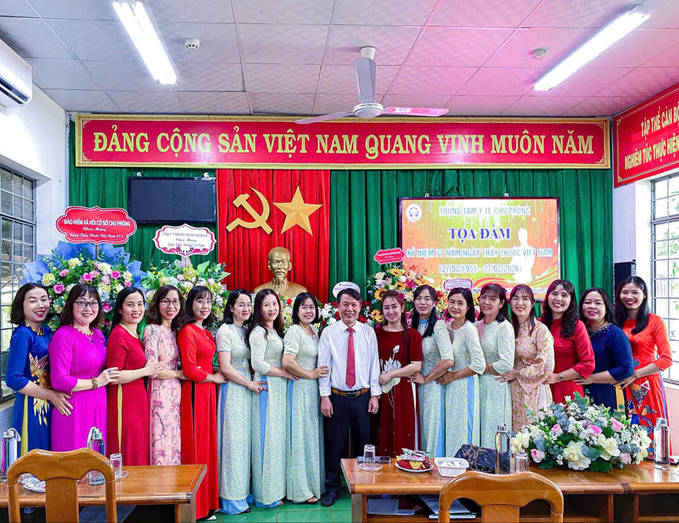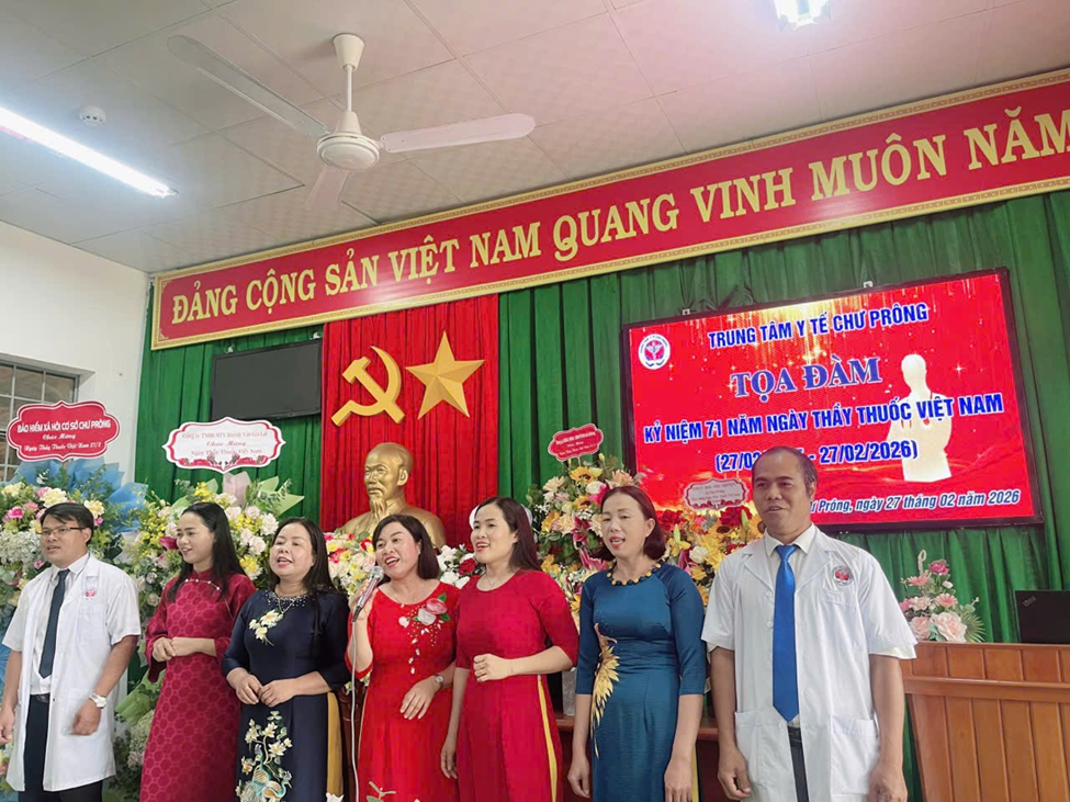 Nhân dịp kỷ niệm 71 năm Ngày Thầy thuốc Việt Nam 27/02, Chiều ngày 27/02/2026 tại Hội trường, Trung tâm Y tế Chư Prông đã tổ chức buổi gặp mặt, ôn lại truyền thống vẻ vang của ngành Y tế và biểu dương những đóng góp của đội ngũ cán bộ, viên chức, người lao động trong công tác chăm sóc và bảo vệ sức khỏe Nhân dân.